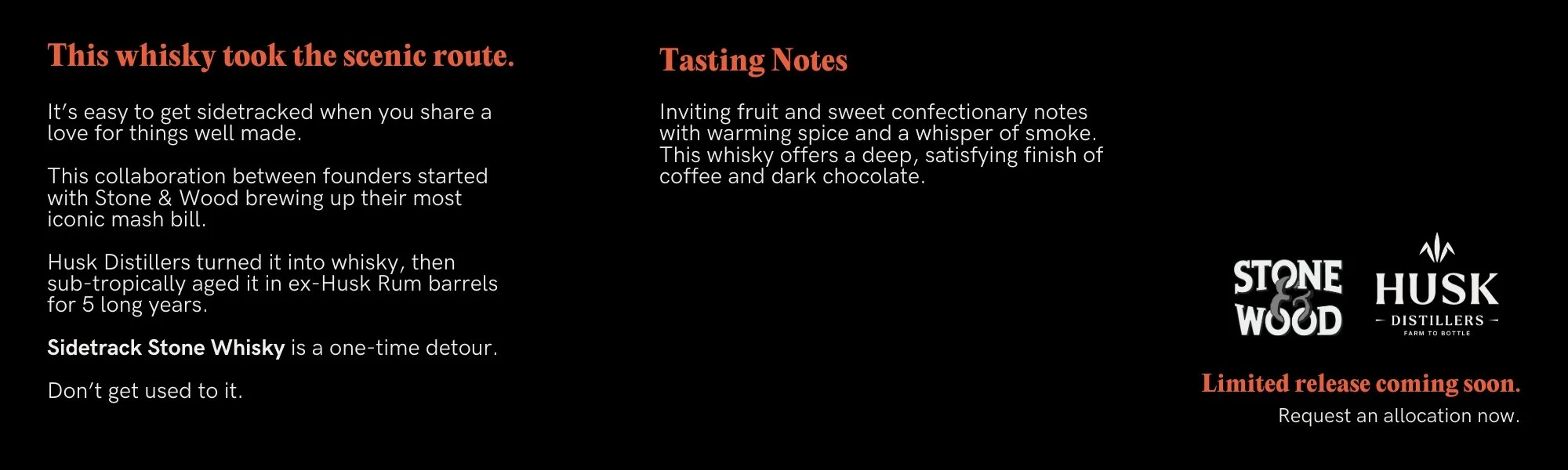 Thank you. Sidetrack Stone Whisky is launching mid-winter.